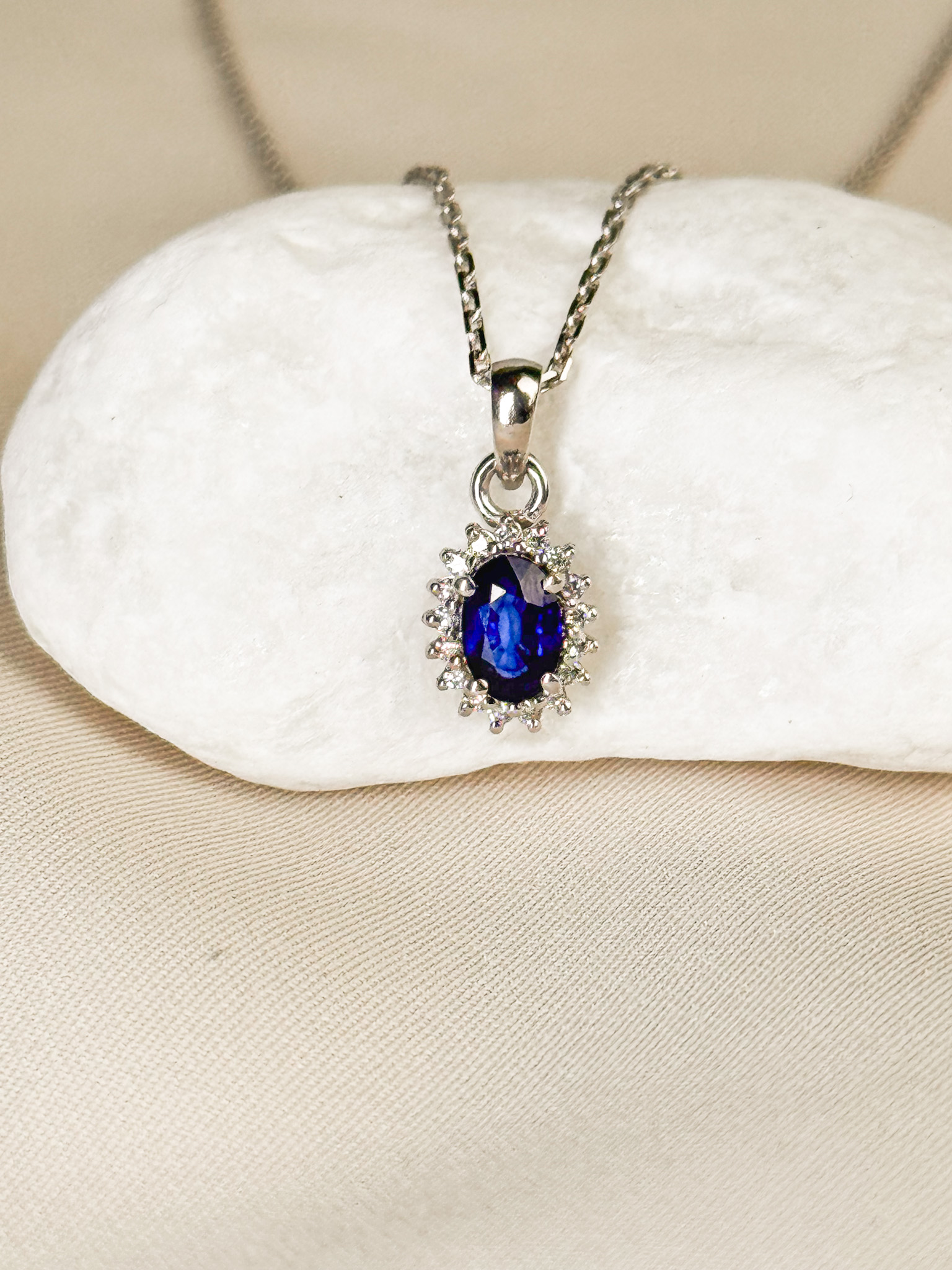 | Gemstone Details | 1 Blue Sapphire 0.63CT, 17 Diamonds 0.11CT |