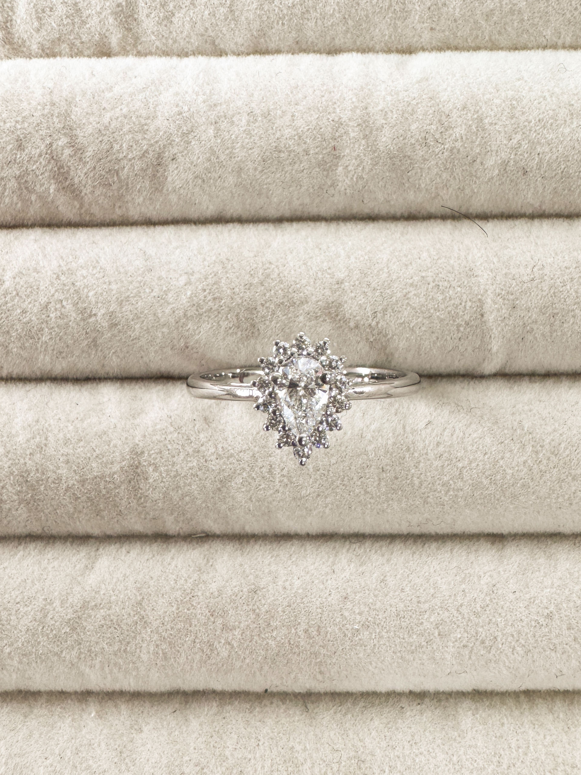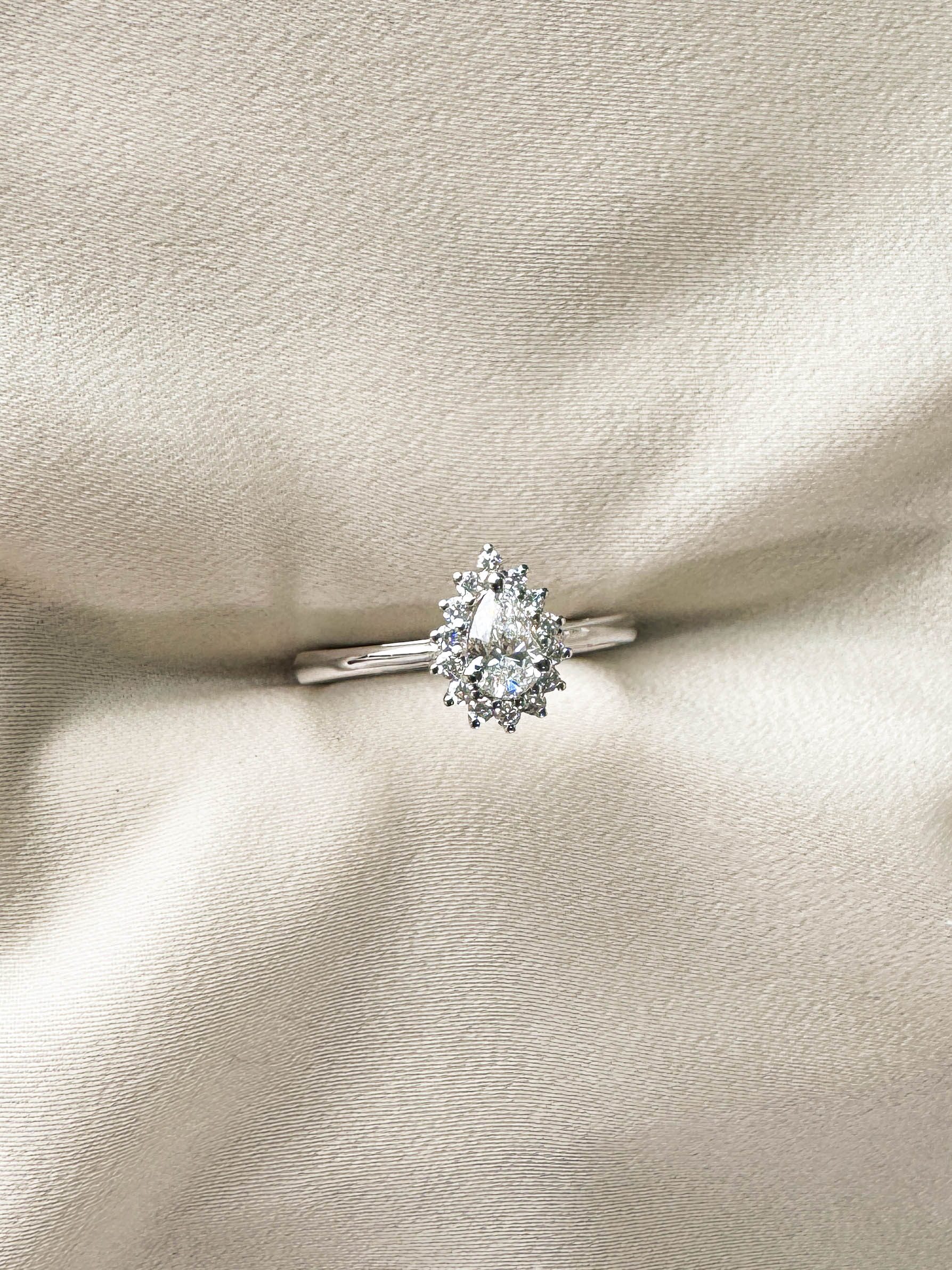 | Gemstone | 1 Pear Diamond – 0.32CT 14 Round Diamond – 0.14CT |